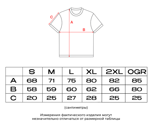 *измерения фактического изделия могут незначительно отличаться от размерной таблицы